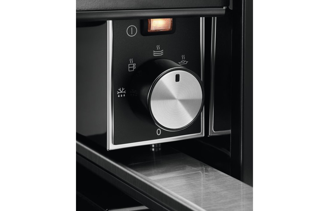 Finished in anti-fingerprint stainless steel, the drawer integrates beautifully with AEG ovens and contemporary kitchen designs.