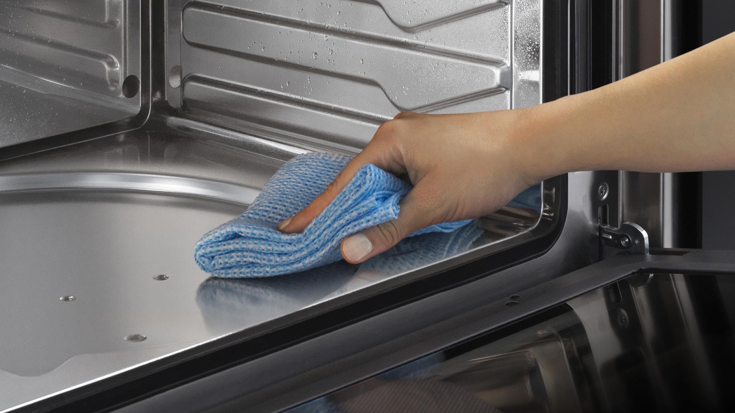Cleaning and care of the Steam Oven is easy. After each use, simply wipe the smooth stainless steel interior with a dry cloth.