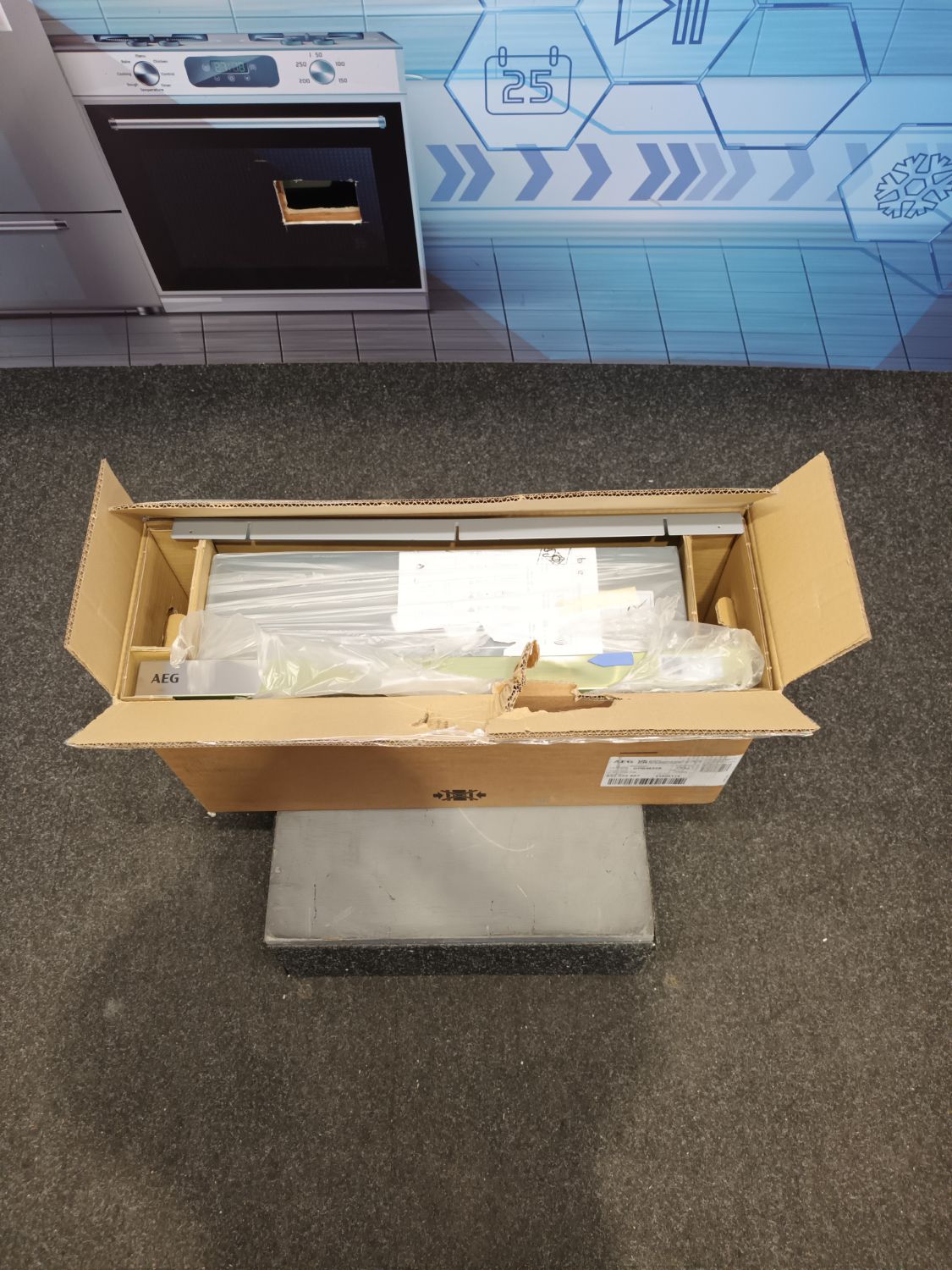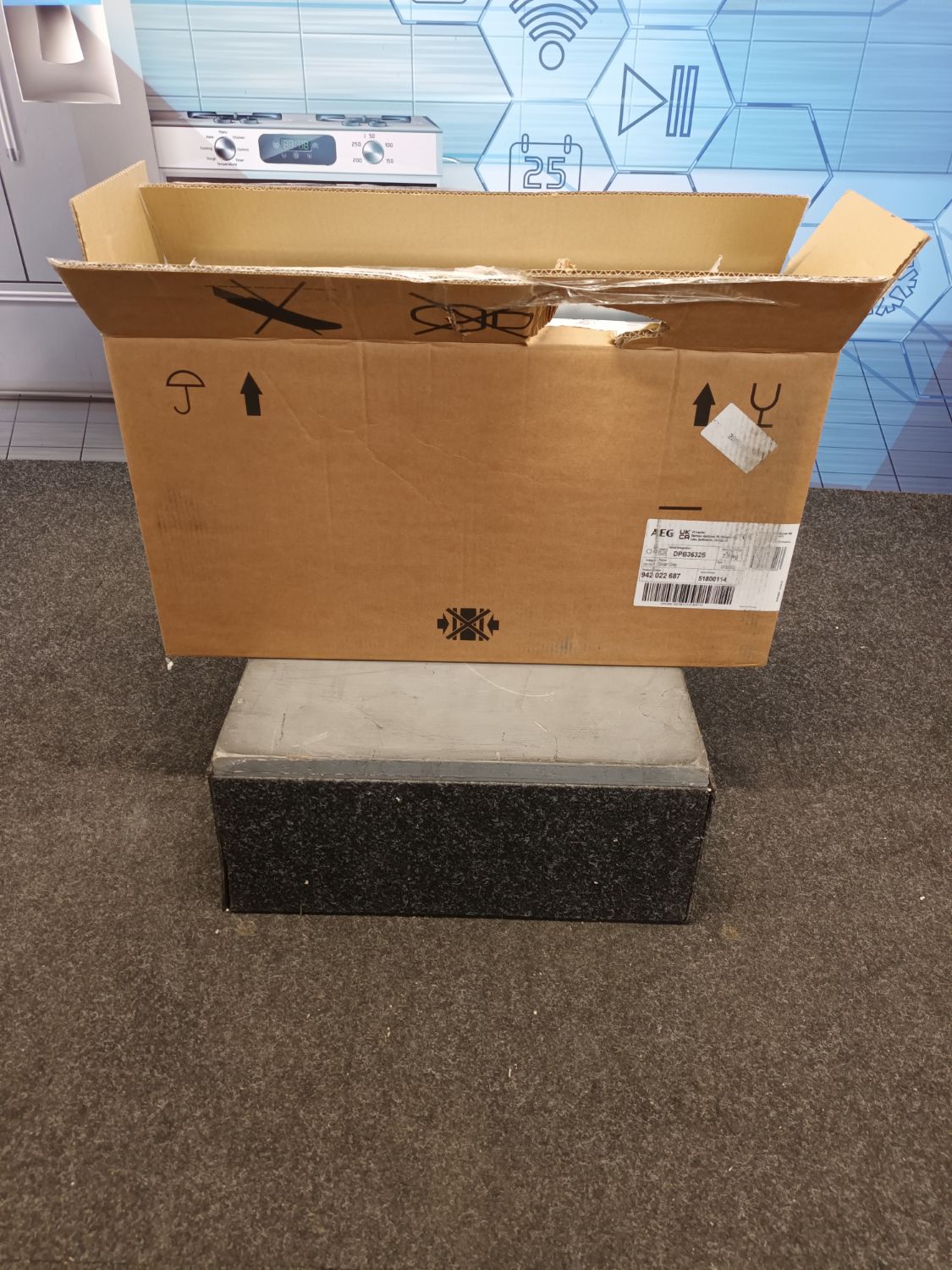 This is a brand new boxed item that has a dent on the front of the unit. Please see our photographs. The item comes with all manuals and accessories and full 2 year AEG warranty.