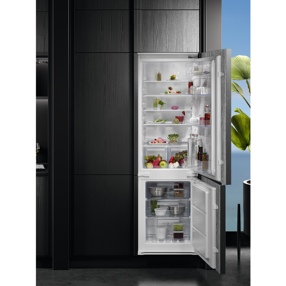 - Integrated Design: The fridge-freezer is fully integrated, so it fits seamlessly into your kitchen’s cabinetry. It blends in perfectly, maintaining the sleek aesthetics of your kitchen while providing maximum storage capacity.