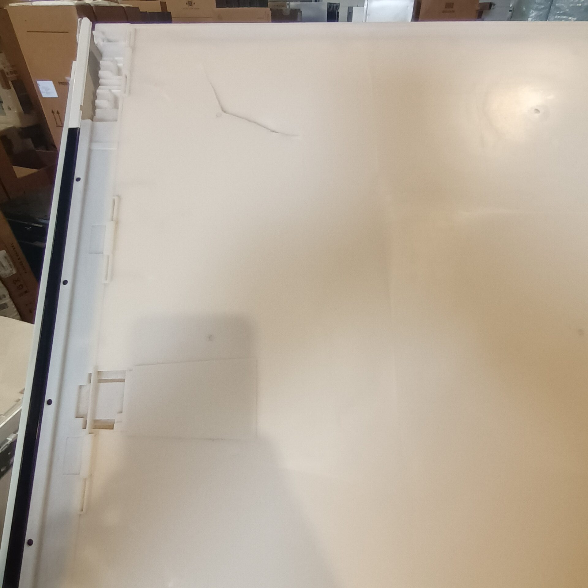 This is a brand new, unused item that has dents on the right and left side of the machine and a crack on the top. None of which will be see on intergration. This is in otherwise new condition. It comes with manuals, accessories and full 2 year Liebherr warranty.
