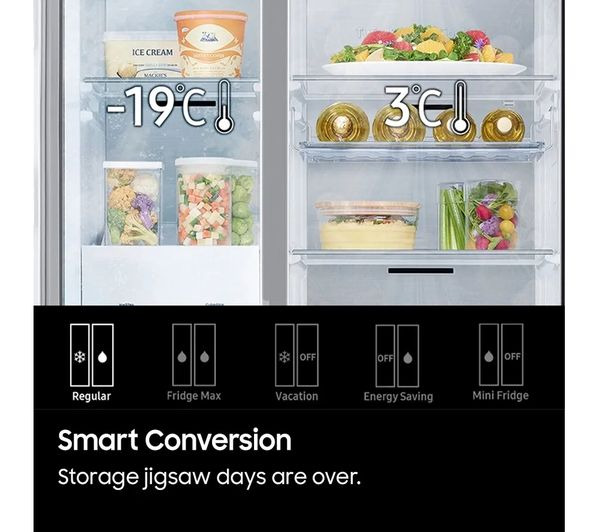 With its sleek matt stainless finish, spacious interior, and innovative cooling technologies, this Samsung American fridge freezer is built for style, efficiency, and everyday convenience. From keeping food fresher for longer with Twin Cooling Plus™ to providing chilled water and ice on demand, it’s a premium addition to any modern kitchen.