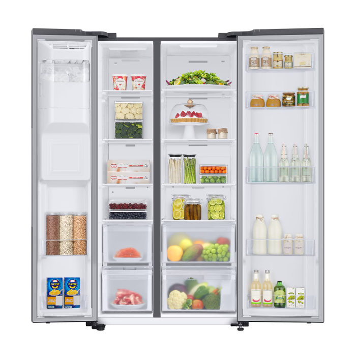 The Samsung RS67A8811S9 American Style Fridge Freezer is designed to meet the demands of modern family living, combining advanced cooling technology with an elegant matt stainless finish. With a 635-litre total capacity and clever SpaceMax™ Technology, it offers generous storage while keeping external dimensions compact.