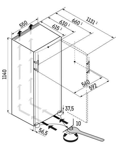 The Liebherr KE 2350 Comfort is designed for freestanding installation and is supplied with a standard power cable and plug, making setup straightforward. Adjustable feet allow precise levelling on uneven floors, while rear transport wheels help manoeuvre the appliance safely into position.