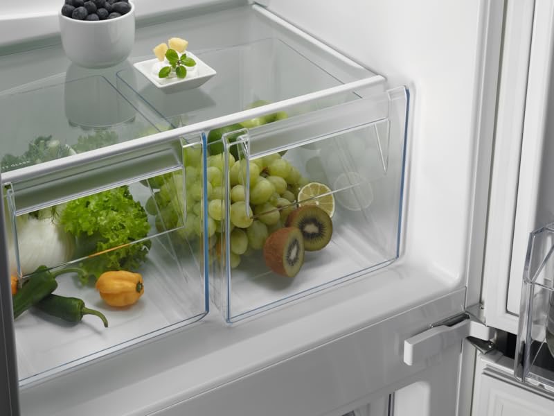 • Dedicated dairy compartmentsalad crisper, and removable egg tray for organized storage.