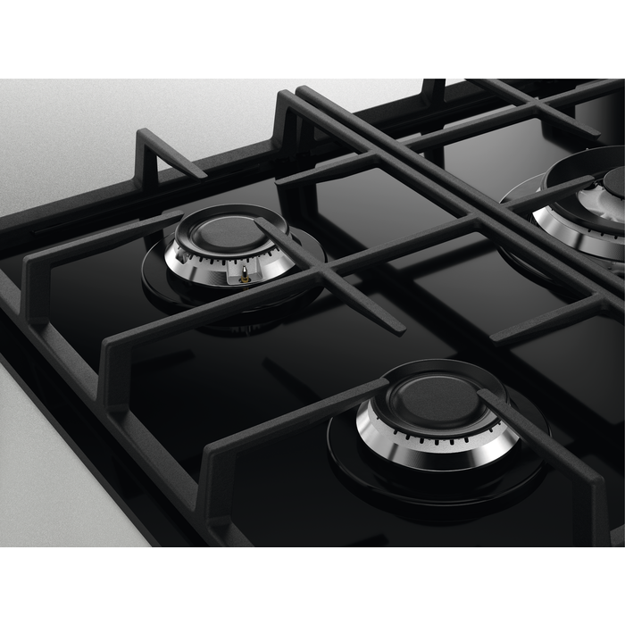 Featuring heavy-duty cast iron pan supports, this hob offers the kind of support and durability found in restaurant kitchens. Not only do they keep your pans stable and secure, but they also add a bold, professional touch to your cooking space. The frameless black glass surface is modern, minimal, and easy to wipe clean after every culinary adventure.