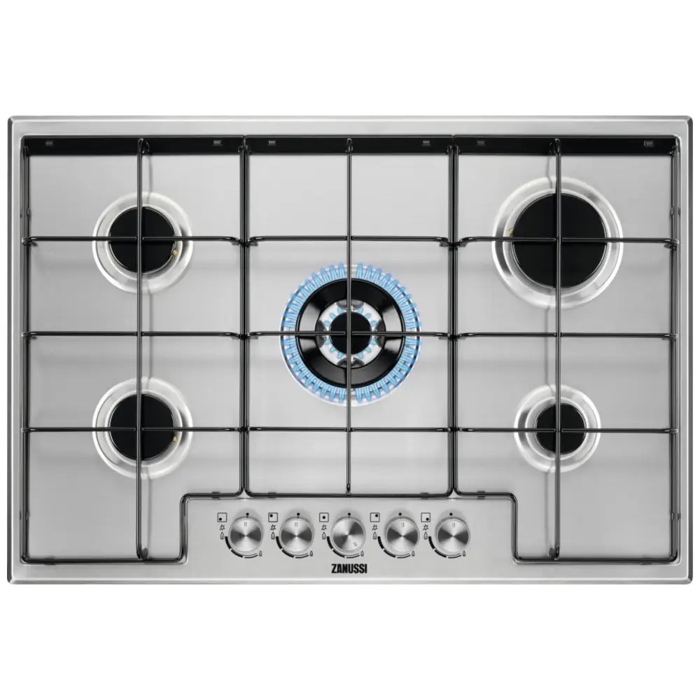 Hob ZANUSSI ZGNN755X Gas Hob 5 Ring With Wok Burner Silver 750mm Wide