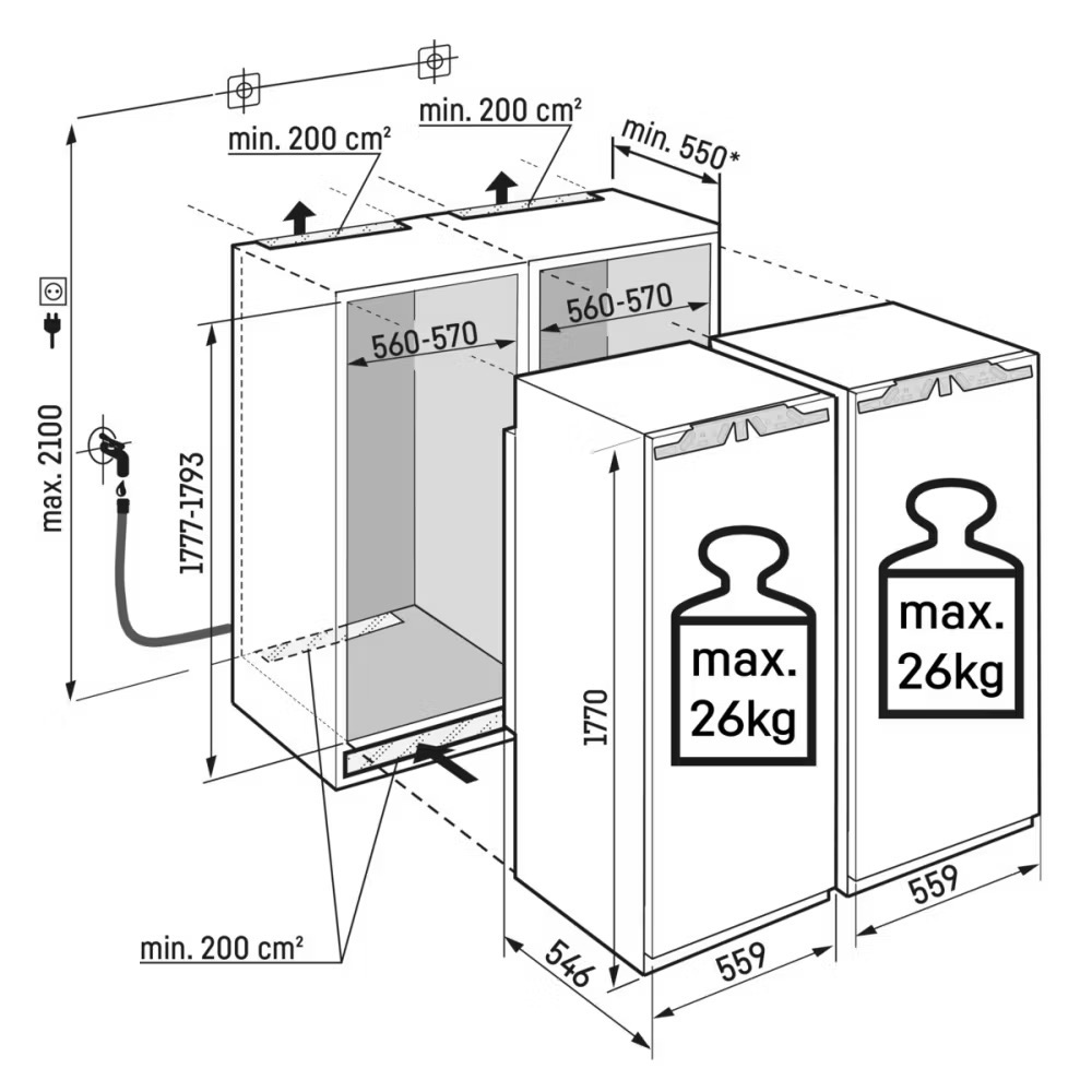 Niche dimensions (H x W x D): 1772–1788 x 560–570 x 550 mm