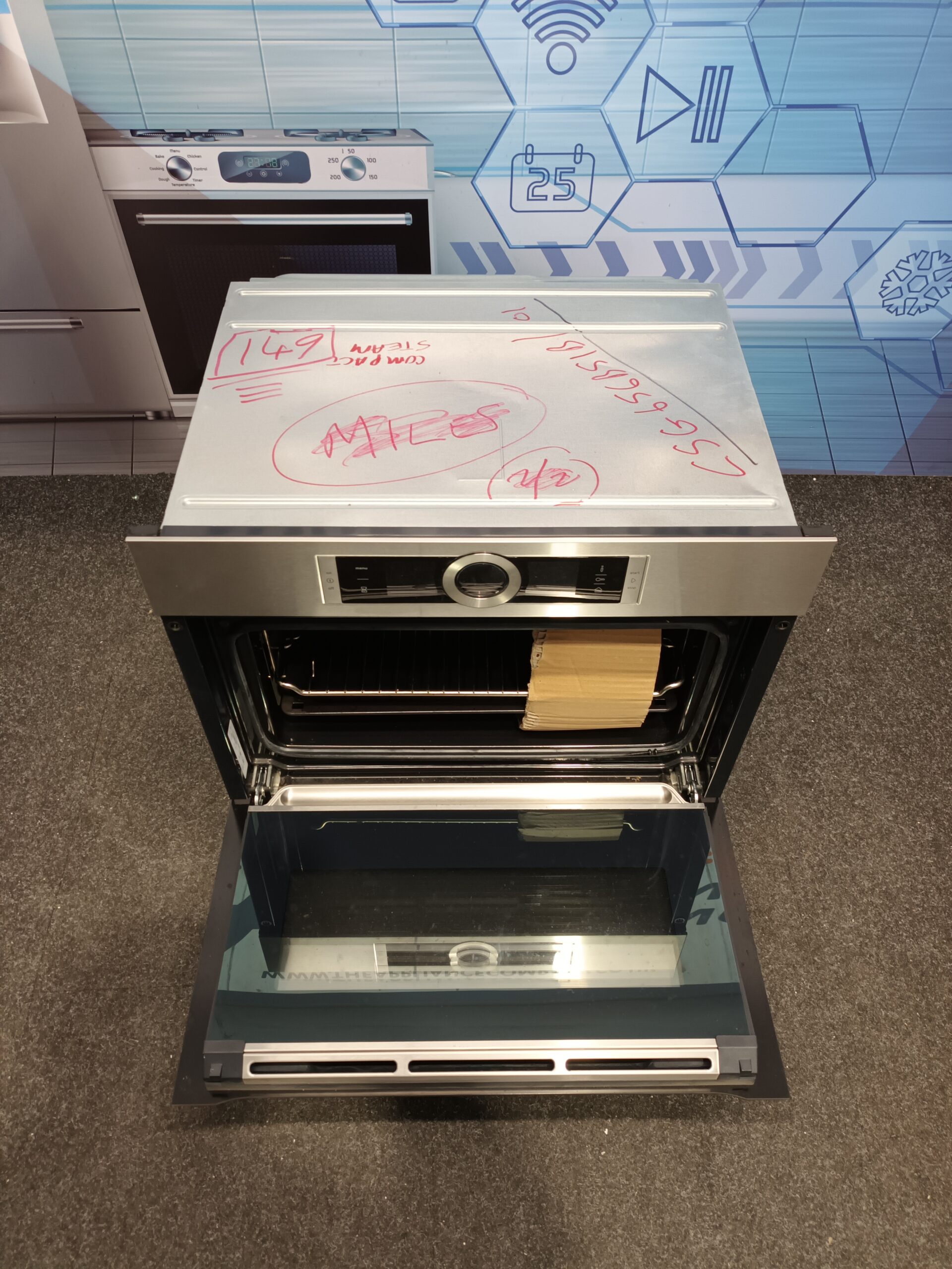 Shop the Bosch CSG656BS1B Compact Electric Steam Oven in stainless steel. 47L capacity, 12 cooking functions, steam technology, pyrolytic cleaning & A+ energy rating. Should have gone to APCO.