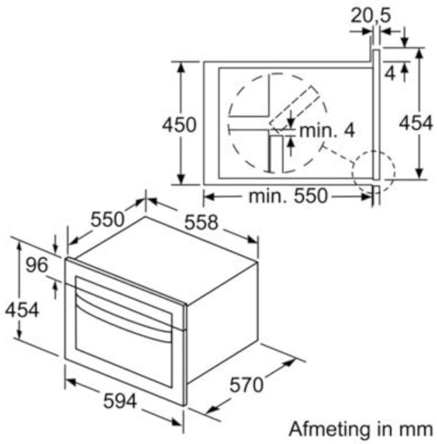 - Power: The microwave has a total electrical load of 3.35 kW and operates at 16A.