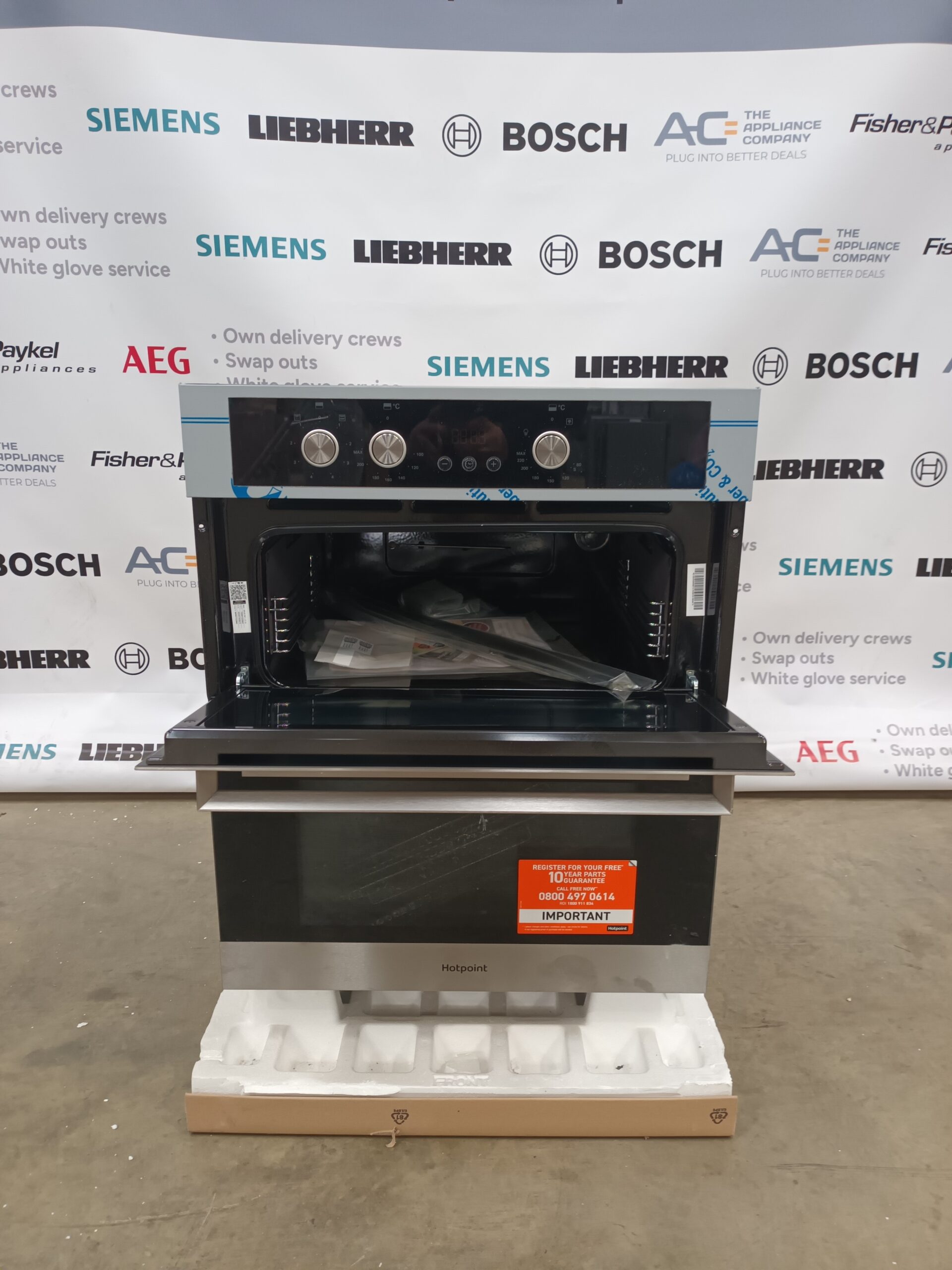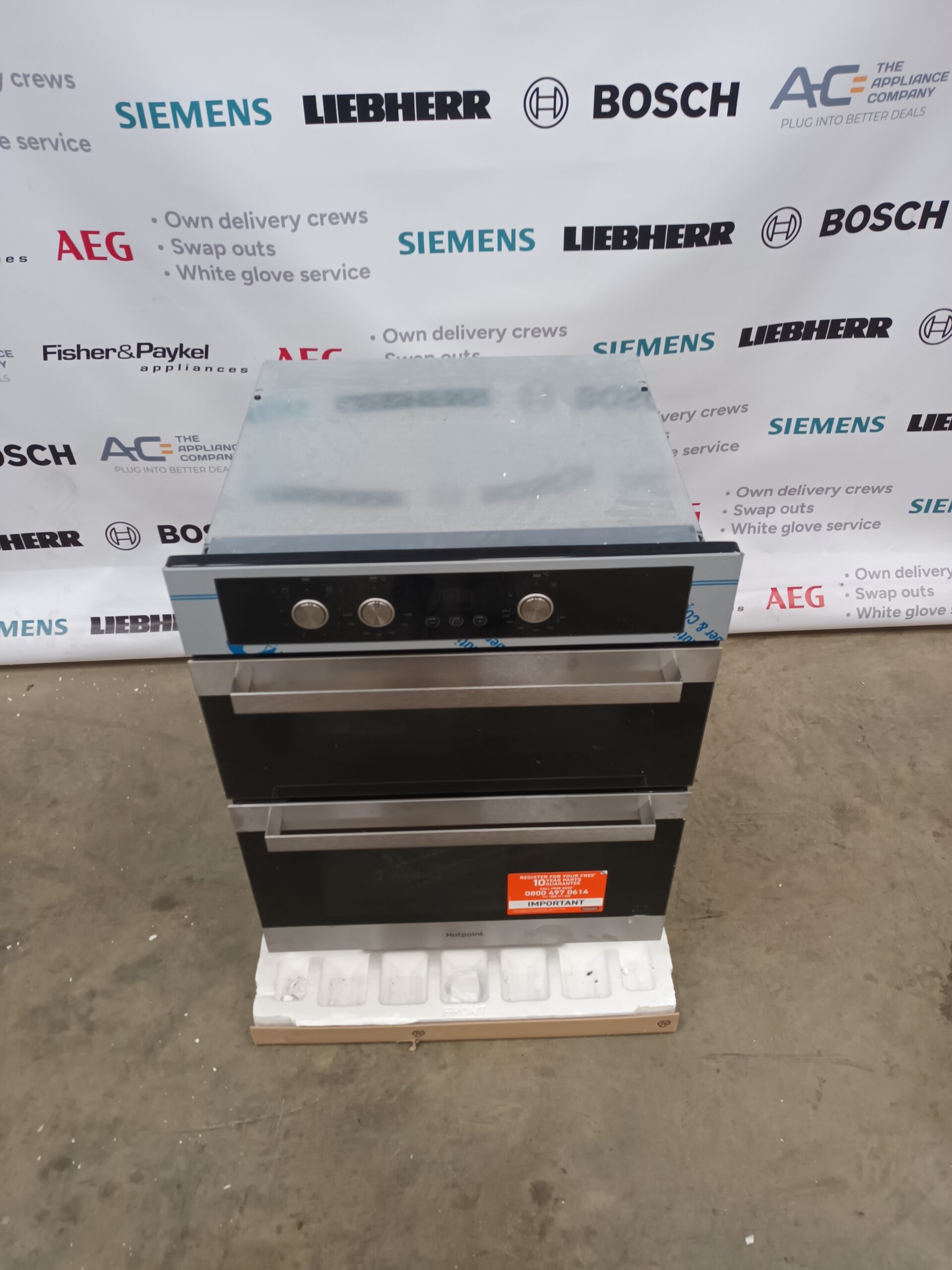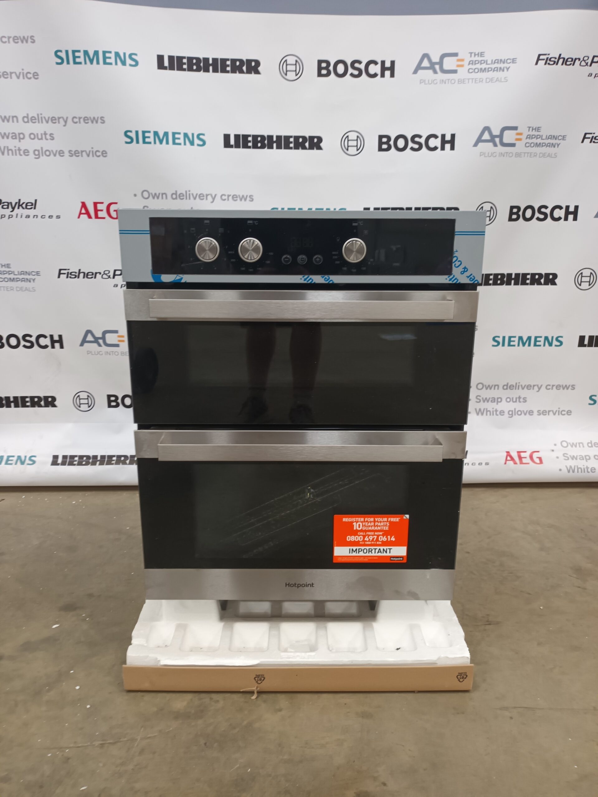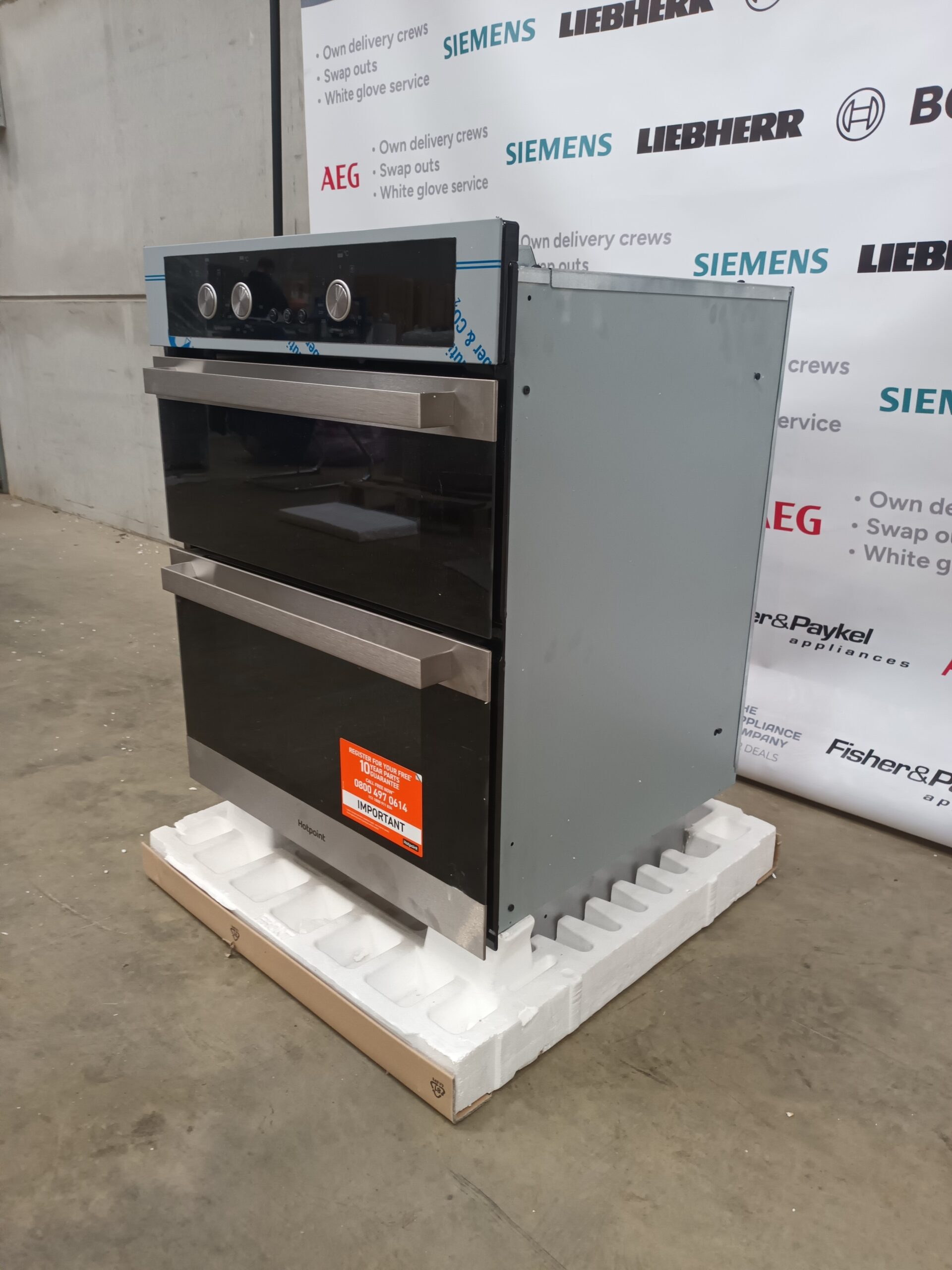Order today and experience versatile cooking and easy maintenance with this sophisticated Hotpoint double oven!