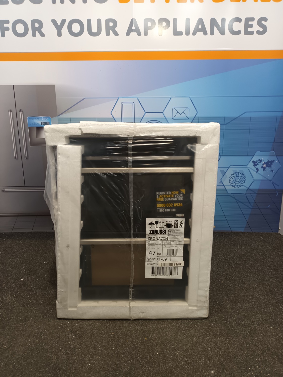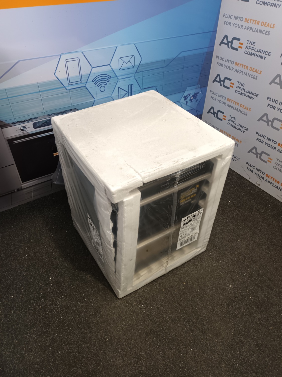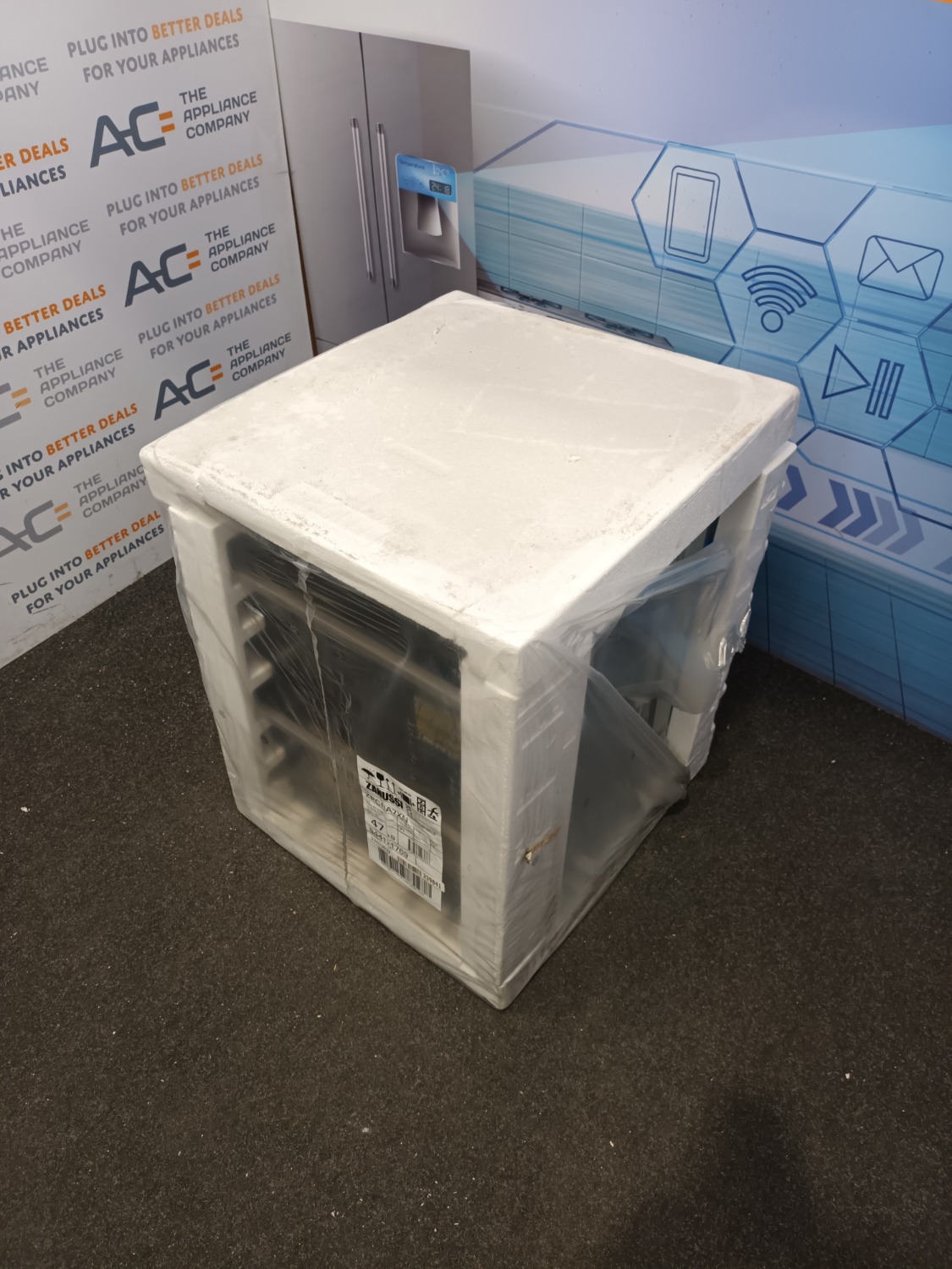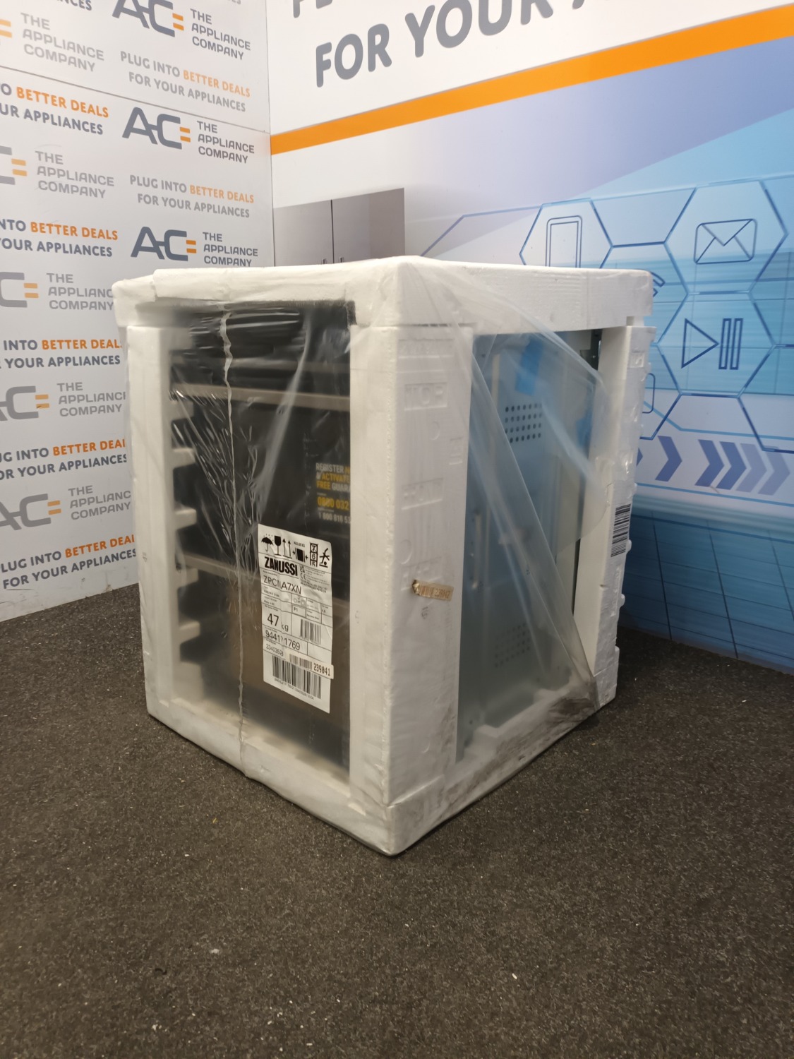 This is a brand new boxed item that has some packaging damage. Please see our photographs. This item comes with all manuals and accessories and full 1 year Zanussi warranty.