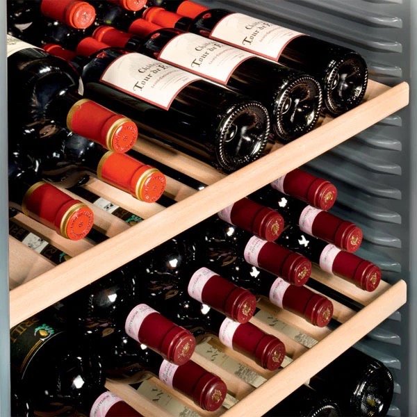 Capable of holding up to 178 Bordeaux-style 0.75L bottles, this Vinidor cabinet features a combination of fixed shelves and 10 pull-out wooden shelves on telescopic rails, providing smooth access and secure bottle storage. Forced air cooling guarantees even temperature distribution throughout the cabinet, while the activated charcoal FreshAir filter maintains clean, odour-free air to protect wine aromas.