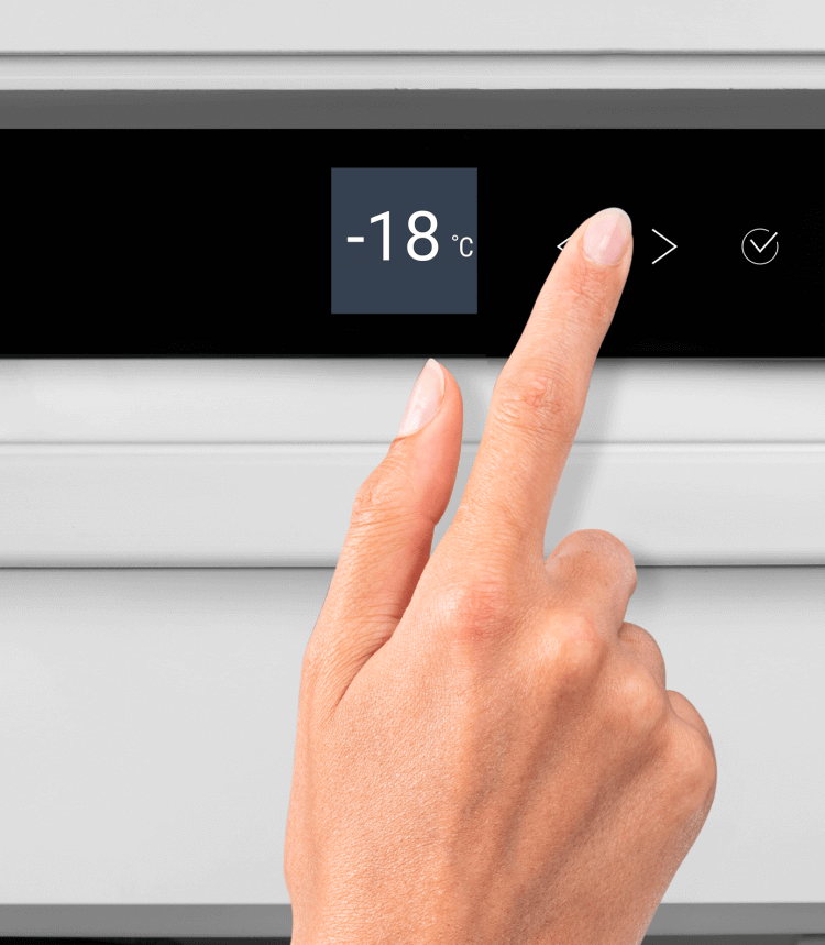 Fingertip control: the touch display enables easy and intuitive operation of your Liebherr. All functions are clearly arranged on the display. By gently tapping a finger, for example, you can easily select the functions or check the current temperature of your refrigerator.